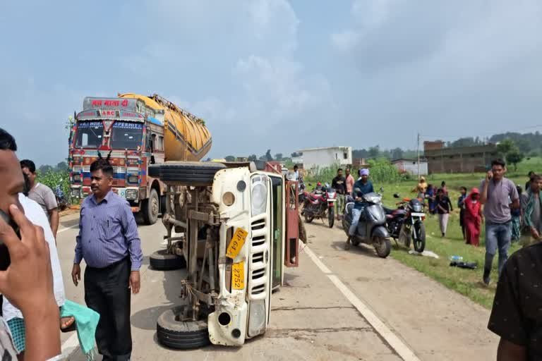 उत्तर प्रदेश के औरैया जिले में अटसू। भूसा लेकर जा रही एक पिकअप बुधवार को पलट गई। हादसे में वहां से निकल रहे पांच लोग उसमें दब गए। गोशाला के केयर टेकर व प्रधान ने सभी सकुशल बाहर निकाल लिया। इससे उनकी जान बच गई।गांव सराय टड़वा स्थित अस्थायी गोवंश आश्रय स्थल में भूसा ले जा रही पिकअप गोशाला के पास पलट गई। इससे उझियानी बकेबर निवासी मनोज कुमार, वीर सिंह, सूरज, साजन व बॉबी दब गए।