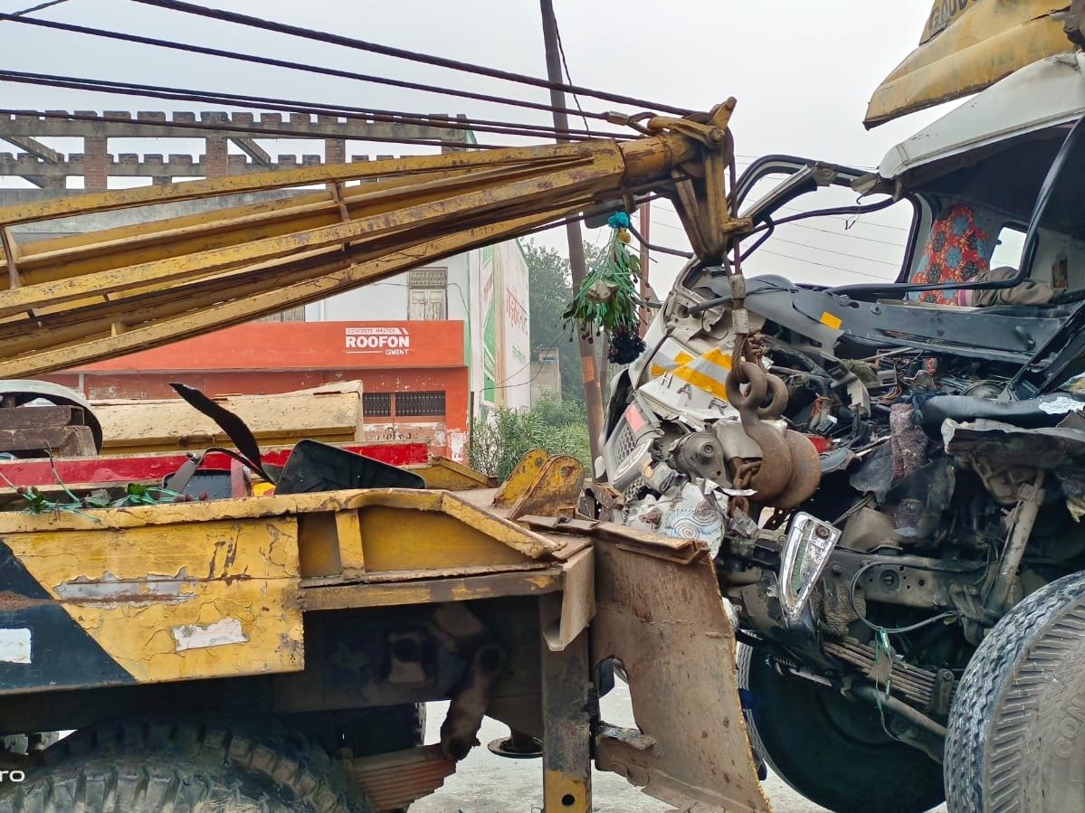 उत्तर प्रदेश के औरैया जिले के अजीतमल (औरैया)। नेशनल हाईवे पर सोमवार की सुबह पांच बजे चालक को झपकी आने से एक ट्रक आगे चल रहे टैंकर से टकरा गया। इससे टैंकर हाईवे किनारे खड़े ट्रॉला से भिड़ गया।आंध्र प्रदेश के गुंटूर निवासी सोमैया गांव के ही खलासी नागा राजू के साथ ट्रक में आंध्र प्रदेश से मिर्च लोड कर आगरा के शमसाबाद जा रहे थे। सोमवार को रास्ते में सुबह करीब पांच बजे अजीतमल हाईवे पर गोपाल धर्मकांटा के पास ट्रक चालक को झपकी आ गई। इससे ट्रक आगे चल रहे टैंकर से भिड़ गया। खाली टैंकर लेकर चालक रायबरेली से मथुरा जा रहा था। टैंकर मथुरा निवासी भीमसेन चला रहा था। उसका खलासी वीरपाल सो रहा था।